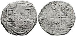Felipe III (1598-1621). 8 reales. 1619. Potosí. T. (Cal-927). Ag. 26,41 g. Muy escasa. MBC-. Est...450,00.