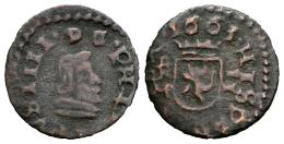 Felipe IV (1621-1665). 2 maravedís. 1663. Trujillo. M. (Cal-172 var). (Jarabo-Sanahuja-M778). Ae. 0,53 g. Ceca a izquierda. Rara. MBC-. Est...35,00.
