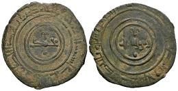 Reinos de Taifas. `Abd Allah Al-Mansur. Dirham. ¿413 H?. Al-Andalus. Taifa de Badajoz. (F. Vañó-P. 87, mismo ejemplar). Ve. 3,14 g. Publicado en la obra "De la legitimidad, las sucesiones y su reflejo en las acuñaciones andalusíes", p. 87. Muy rara. MBC+. Est...400,00.
