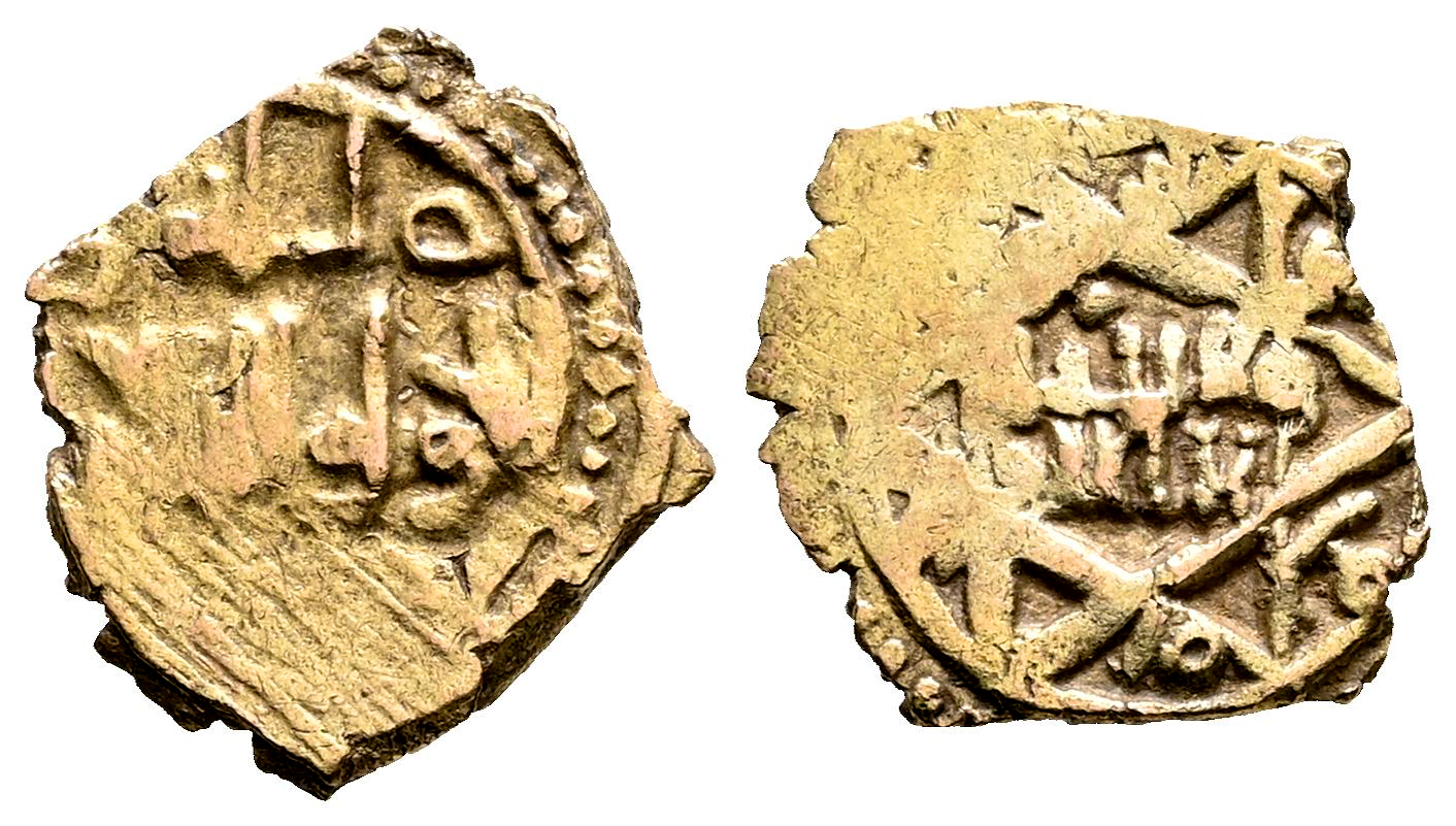 Reinos de Taifas. Anónimo. Fracción de Dinar. Taifa de Toledo. Au. 0,76 g. David Francés ''De la legitimidad, las sucesiones y su reflejo en las acuñaciones andalusíes'' pág. 137; Codera y Zaidin (1897) 1047 bis; Ibrahim, Canto (2003) Suplemento a los Reinos de Taifas, nº 169. Rara. BC+/MBC-. Est...200,00.