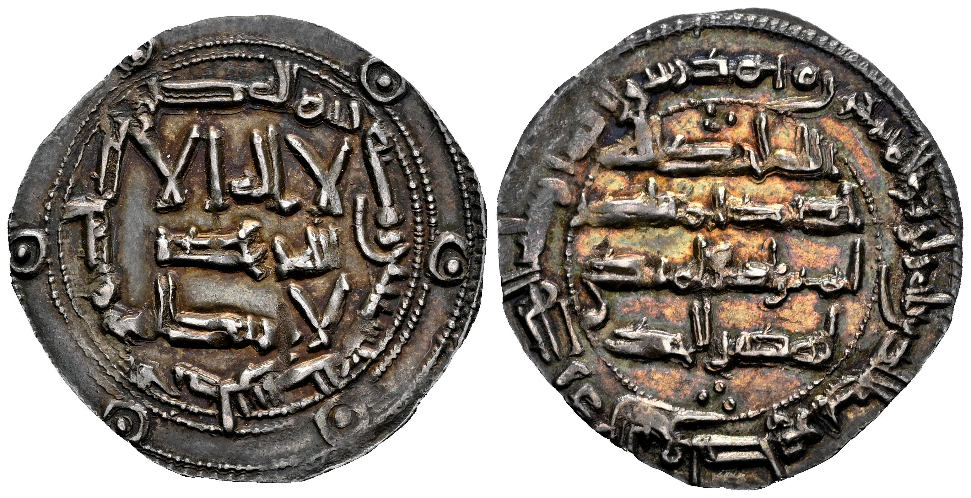 Emirato Independiente. Al-Hakam I. Dirham. 190 H. Al-Andalus. (Vives-88). (Frochoso-190.3). Ag. 2,76 g. Suave pátina con una precioso tono de monetario. EBC-. Est...80,00.