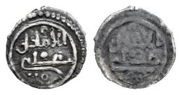 Almorávides. Alí Ibn Yusuf. 1/8 Quirate. 500-537 H. (Fbm-Ca23 var.). (Hazard-934 var.). Ag. 0,11 g. Los ejemplares que conocemos de este tipo solo tienen acuñada la cara frontal, mientras que la parte trasera suele estar lisa. Sin embargo, este ejemplar muestra el cuño habitual en el anverso, pero en ambas caras. Aparentemente inédito. Muy rara. MBC+. Est...200,00.