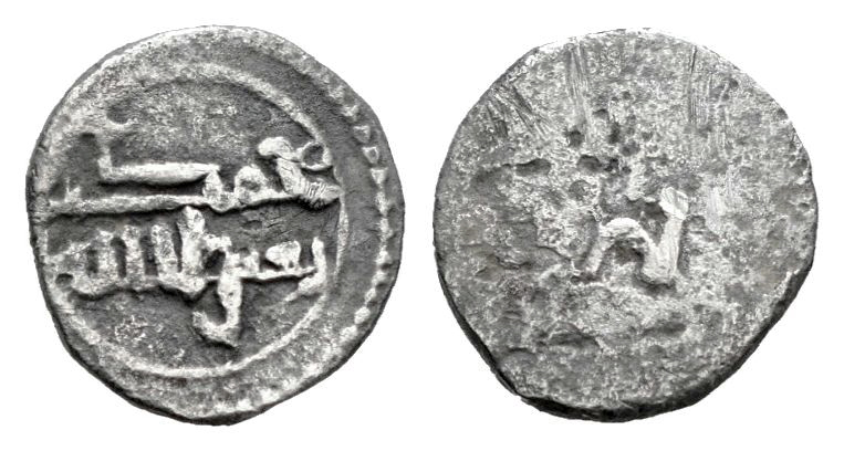 Almorávides. Anónimo. 1/2 quirate. (Fbm-V2). (Vives-2010). (Album-476T). Ag. 0,43 g. Muy escasa. MBC+/MBC-. Est...70,00.
