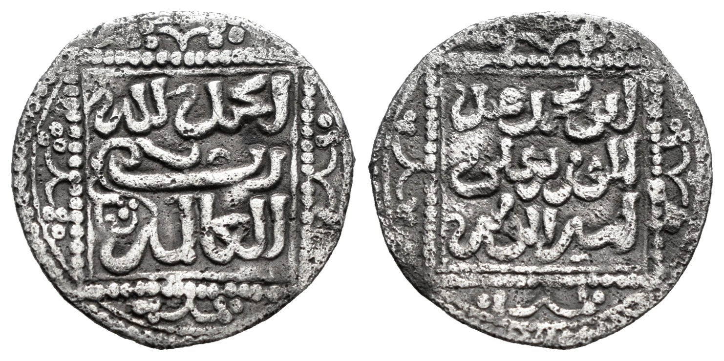 Almohades. Abd Al-Mu`min. Dirham. 524-558 H. (Vives-2046). (Hazard-1066). Ag. 1,31 g. Metal algo poroso. Rara. MBC. Est...100,00.