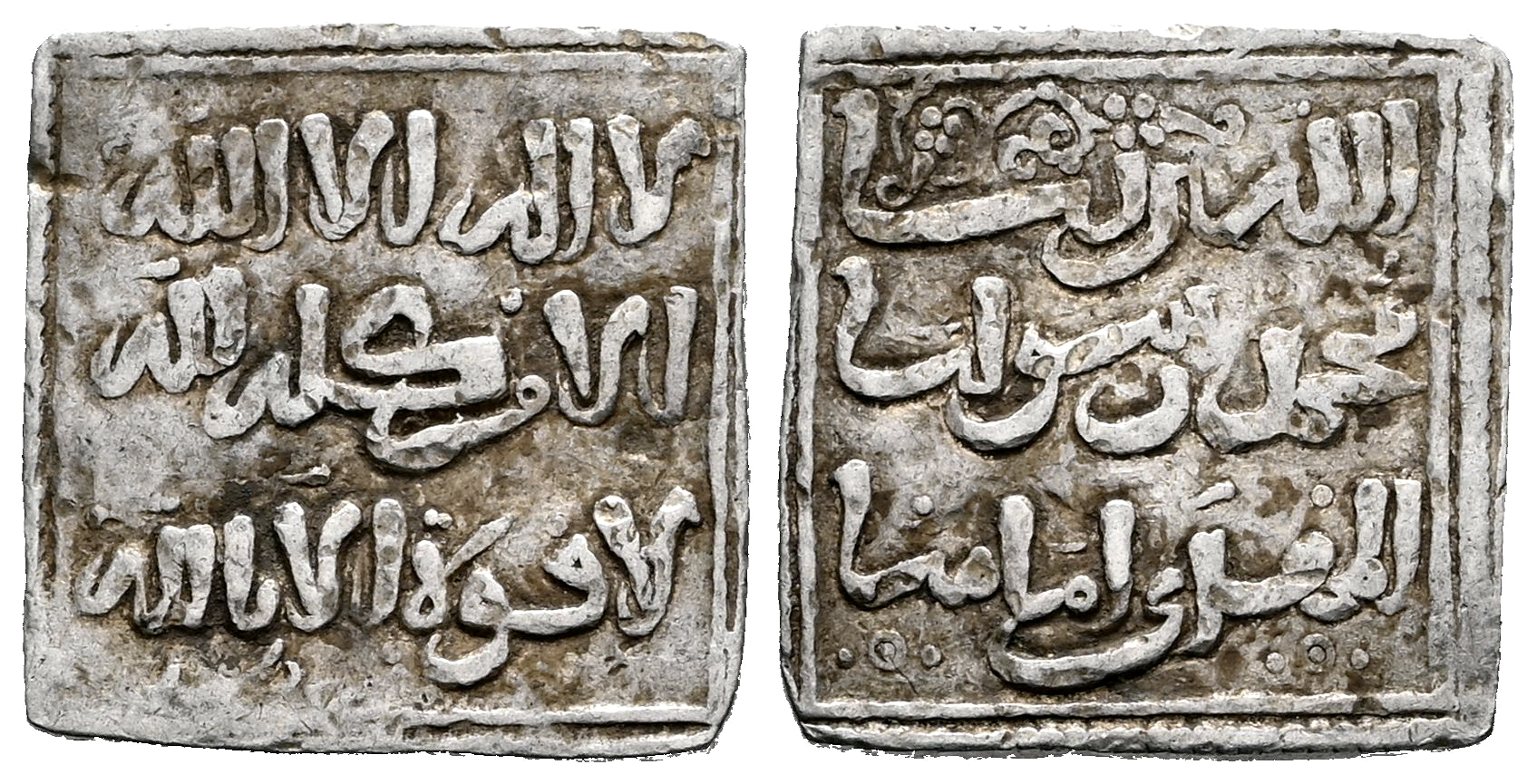 Almohades. Anónimo. Dirham. Qurtuba (Córdoba). (Vives-2092). (Hohertz-584). (Hazard-1112). Ag. 1,55 g. A nombre de Al-Mahdï. Escasa. MBC-. Est...80,00.