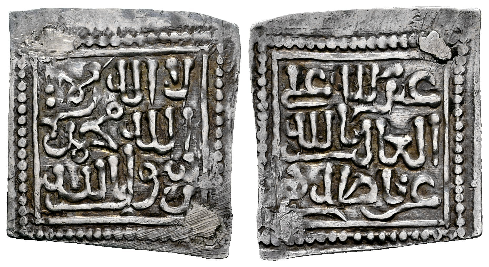 Reino Nazarí de Granada. Ali ibn Sa'd. 1/2 dirham. 868-889 H. Gharnata (Granada). (Vives-2185). (R. Lorente-55). Ag. 0,71 g. Agujeros tapados. MBC+. Est...60,00.