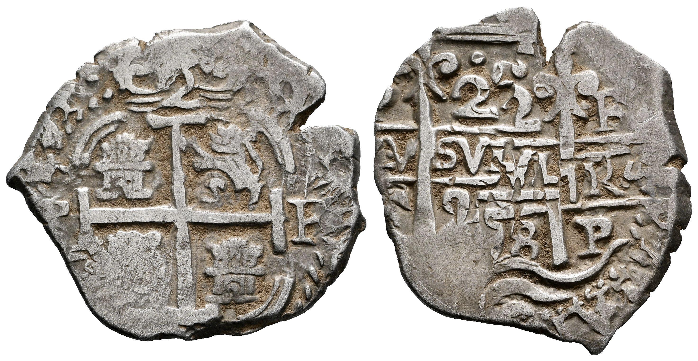 Felipe IV (1621-1665). 2 reales. 1658. Potosí. E. (Cal-926). Ag. 5,35 g. Doble acuñación en reverso. MBC. Est...180,00.