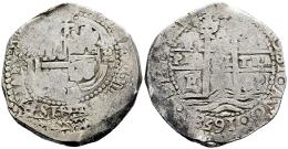Felipe IV (1621-1665). 8 reales. 1658. Potosí. E. (Cal-1520). Ag. 27,70 g. Fecha de 4 dígitos en la leyenda. Visible parte del nombre y el ordinal del rey. Muy redonda. MBC-/MBC. Est...500,00.