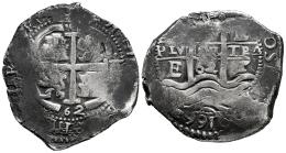 Felipe IV (1621-1665). 8 reales. 1662. Potosí. E. (Cal-1526). Ag. 27,34 g. Triple fecha, la de la leyenda con los 4 dígitos. Triple ensayador. MBC/MBC+. Est...500,00.