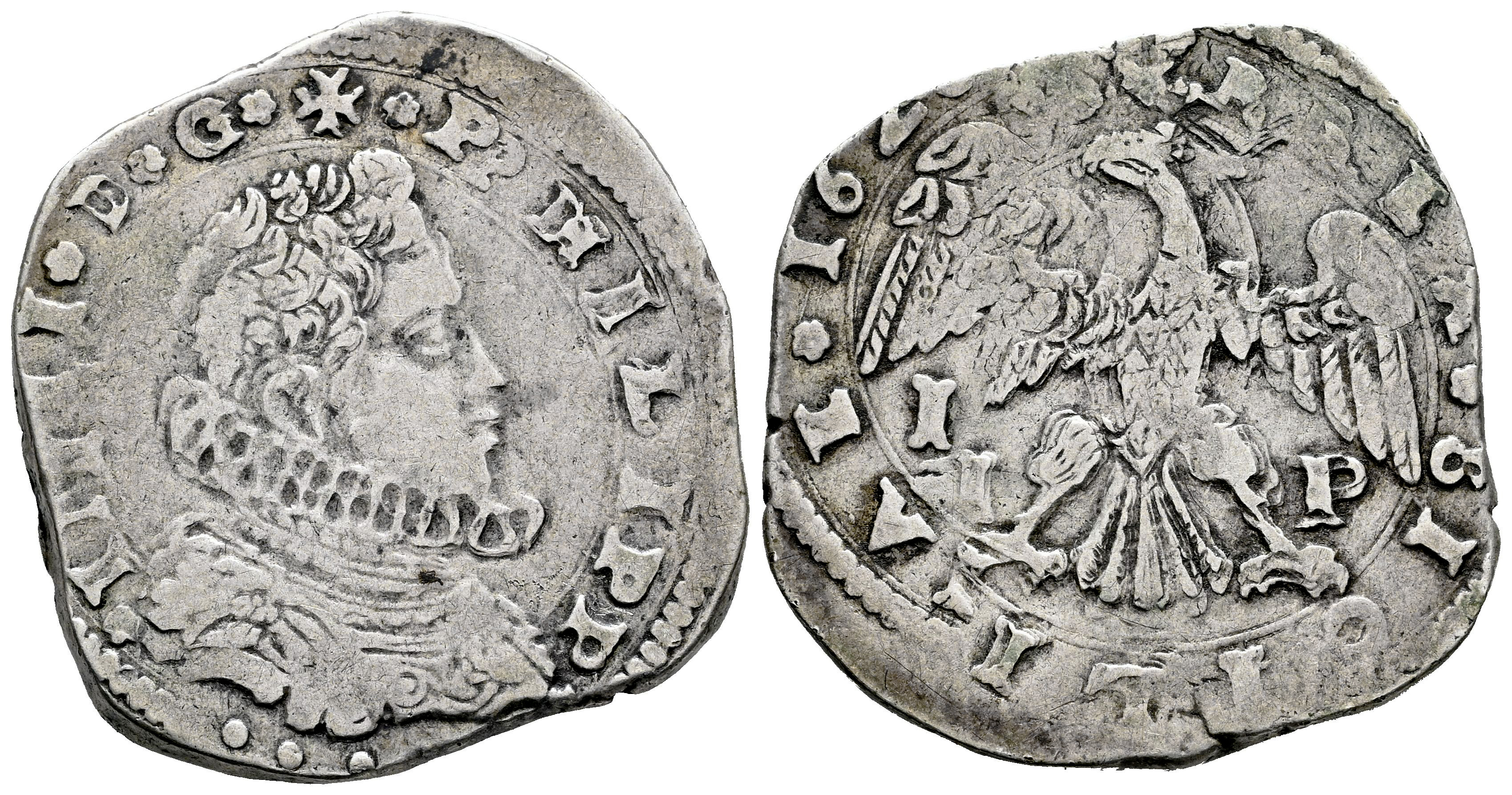 Felipe IV (1621-1665). 4 tari. 1626?. Messina. I-P. (Tauler-2075 similar). (Vti-173 similar). (Mir-355/6 similar). Ag. 10,49 g. Visible la base del último dígito de la fecha. MBC. Est...50,00.