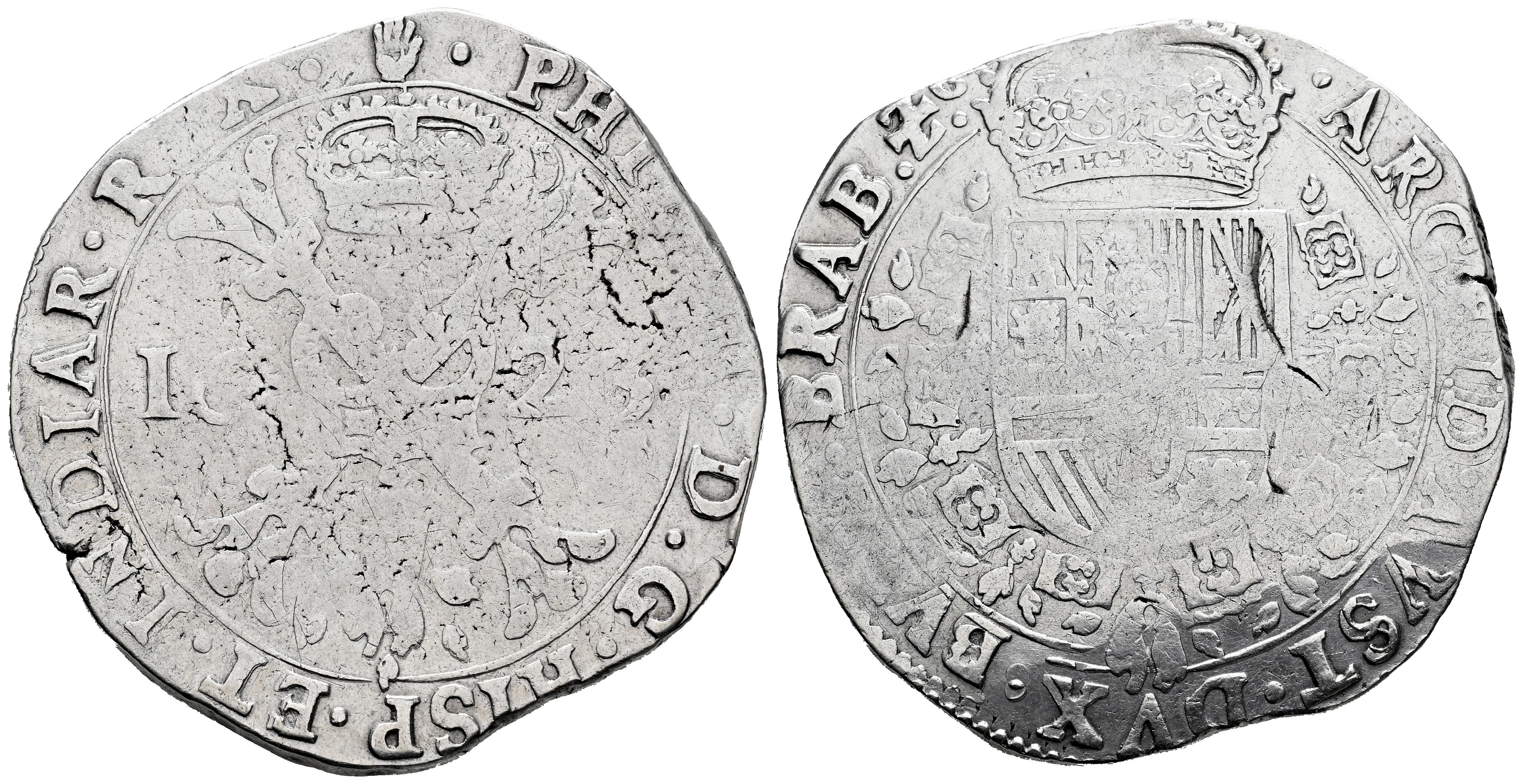 Felipe IV (1621-1665). 1 patagón. 1623. Amberes. (Tauler-2557). (Vti-929). (Vanhoudt-645.AN). Ag. 27,41 g. Limpiada. BC+. Est...120,00.