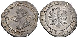 Felipe IV (1621-1665). 1/4 teston (doble gros). 1624. Besançon. (Tauler-3000). (Vti-1644). Ve. 2,74 g. A nombre y busto de Carlos I. Suave y atractiva pátina de monetario. Brillo original. Defectos de acuñación. Escasa. EBC. Est...150,00.