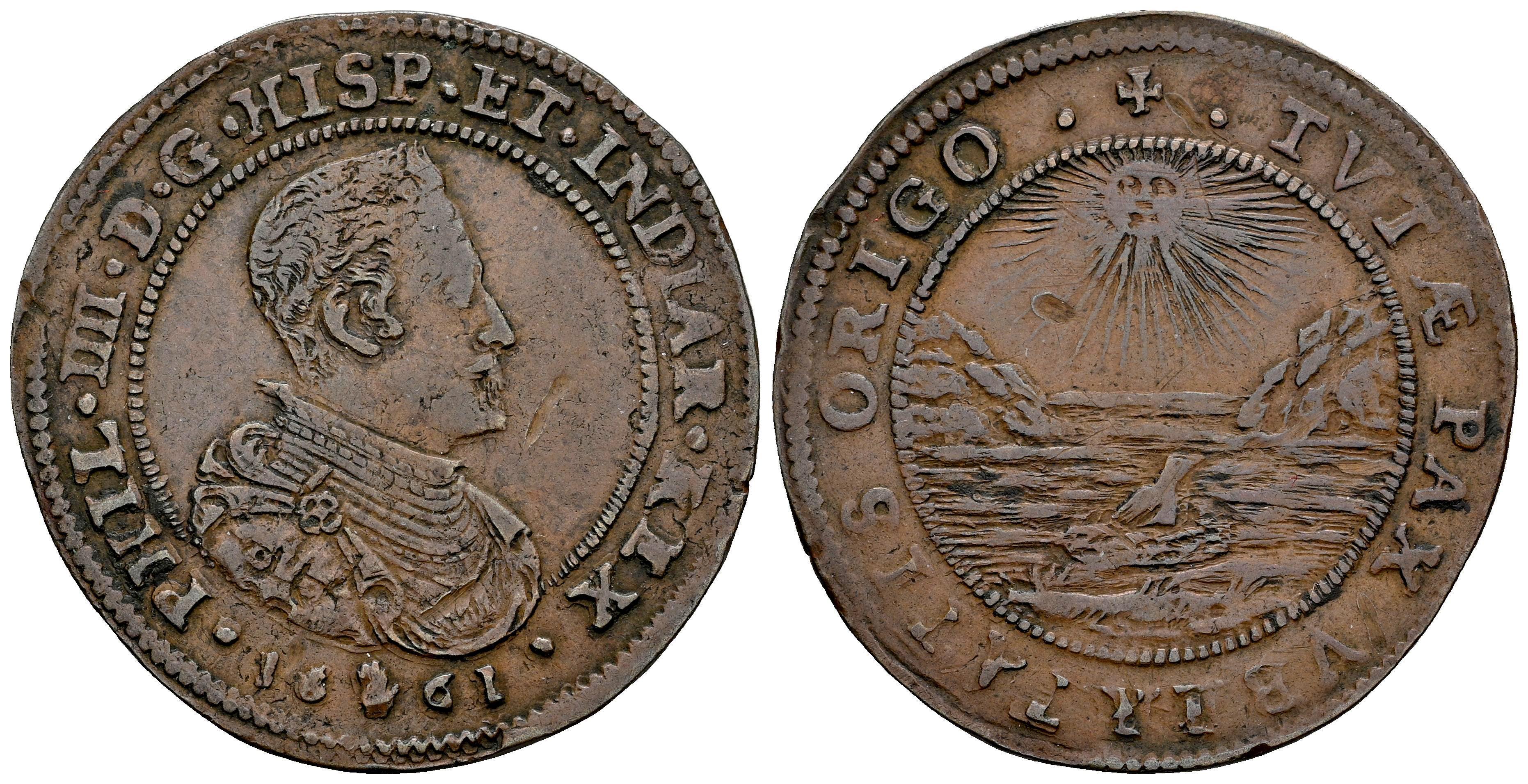 Felipe IV (1621-1665). Jetón. 1661. Amberes. (Dugn-4174.a). Ae. mbc+ La paz origen de la prosperidad. Golpecito en reverso. MBC`. Est...50,00.
