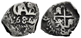 Carlos II (1665-1700). 1/2 real. 1686. Potosí. (Cal-175). Ag. 1,08 g. Doble fecha, una de ellas parcial. Escasa. MBC-. Est...60,00.