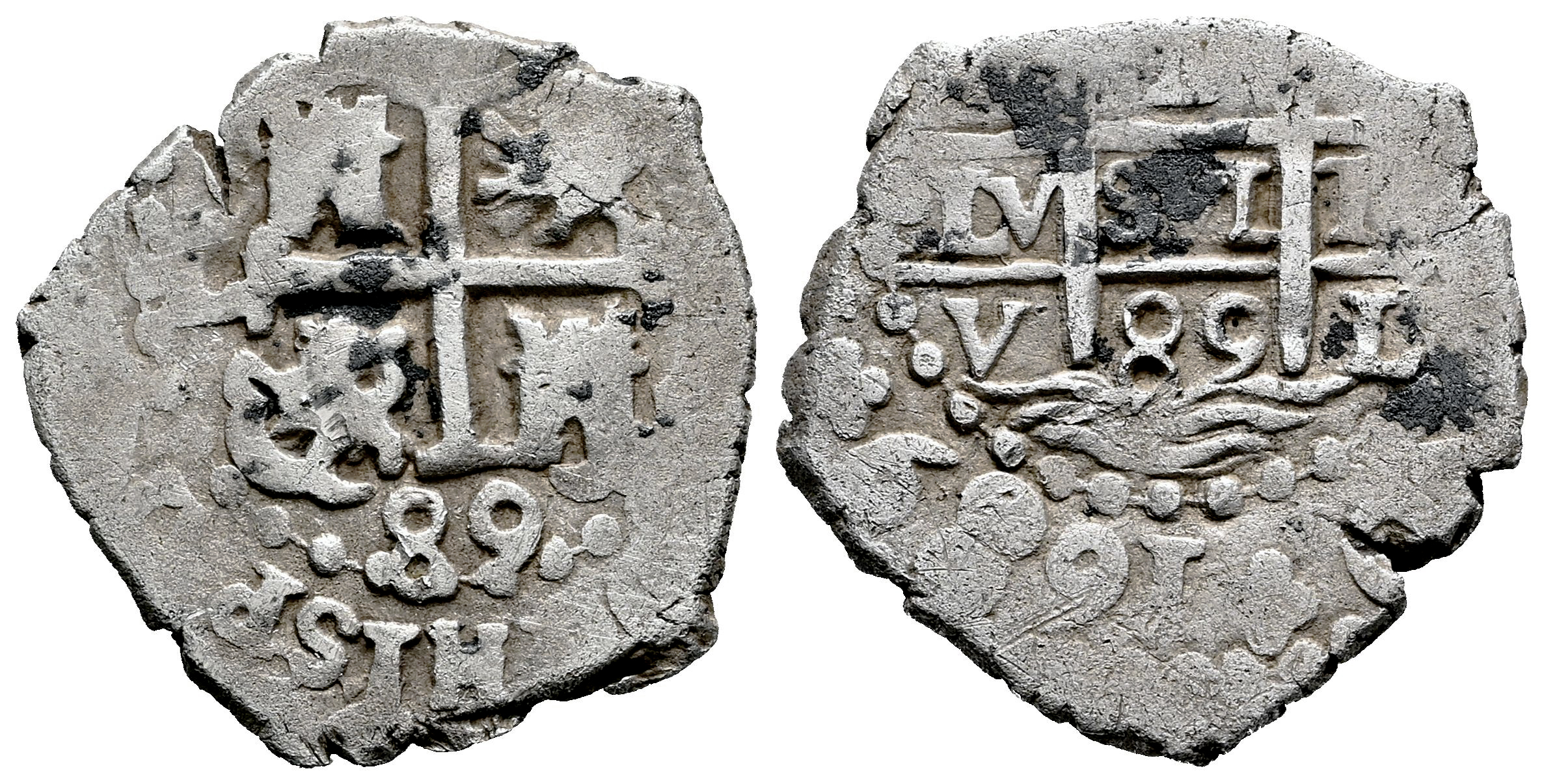 Carlos II (1665-1700). 1 real. 1689. Lima. V. (Cal-220). Ag. 2,73 g. Buen ejemplar, con tres fechas claramente visibles. Su fecha marginal es completamente visible, y en raras ocasiones podemos disfrutar de ella. MBC/MBC+. Est...200,00.