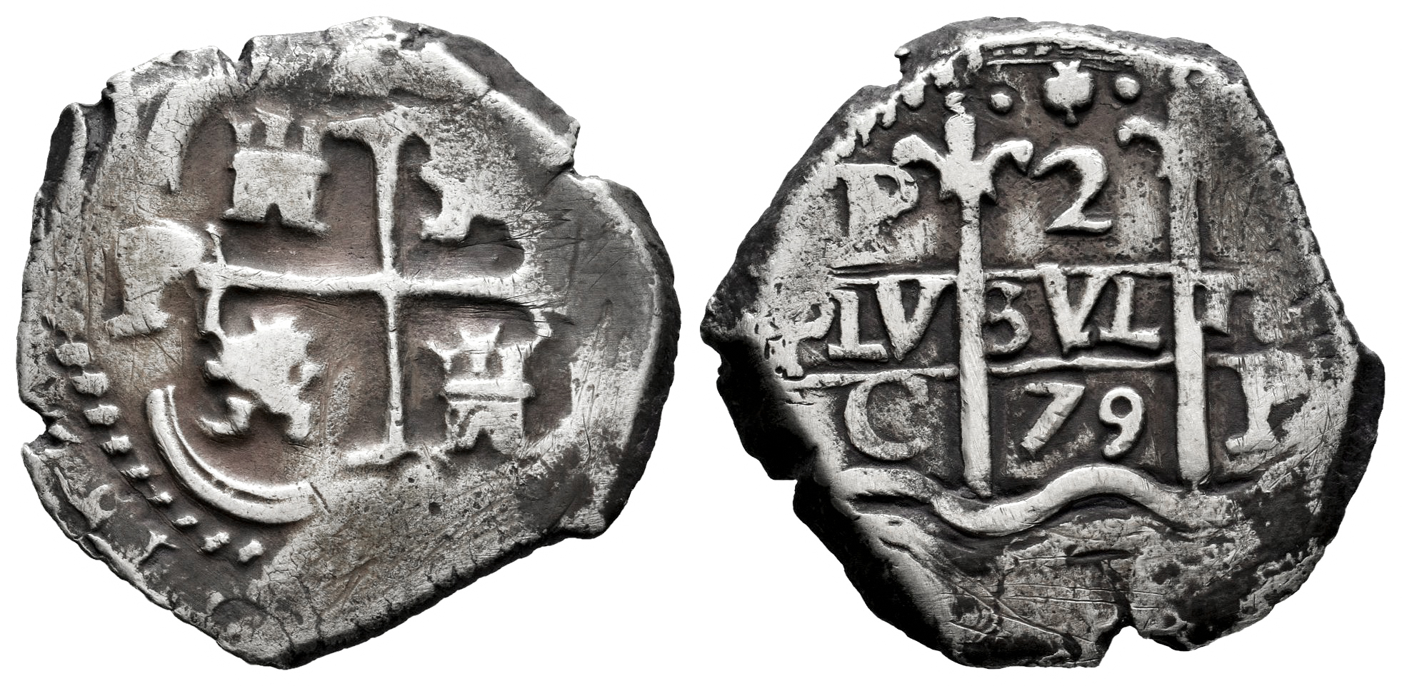 Carlos II (1665-1700). 2 reales. 1679. Potosí. C. (Cal-404). Ag. 6,69 g. Escasa. MBC-/MBC. Est...120,00.