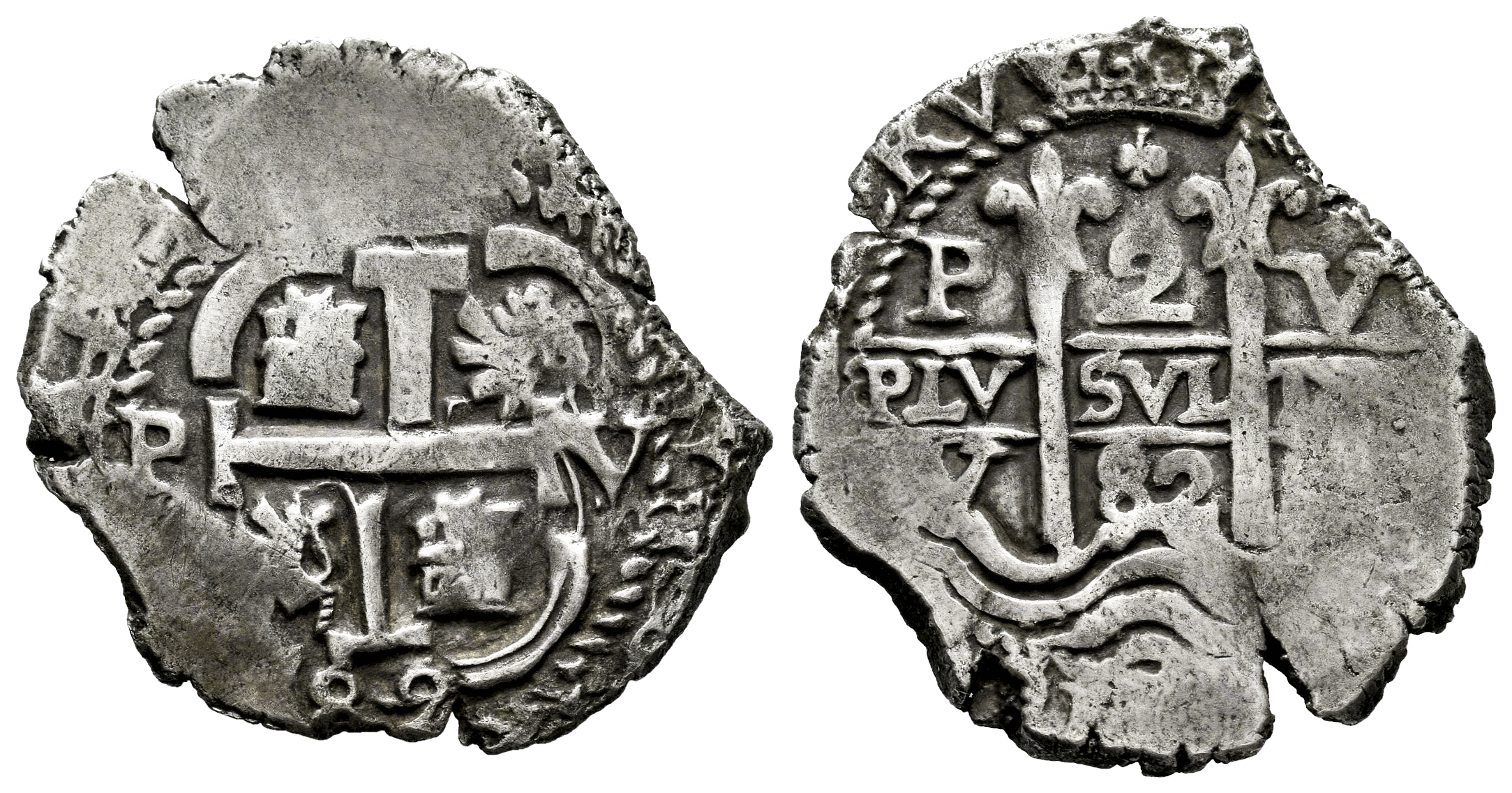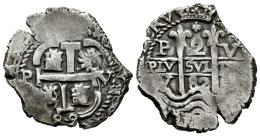 Carlos II (1665-1700). 2 reales. 1682. Potosí. V. (Cal-410). Ag. 6,06 g. Doble fecha y triple ensayador. Buena acuñación. Ligero tono. Escasa así. MBC+. Est...300,00.