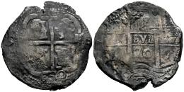 Carlos II (1665-1700). 8 reales. 1670. Potosí. E. (Cal-701). Ag. 24,73 g. Doble fecha. Oxidaciones marinas. Ligera doble acuñación en reverso. Pátina irregular. MBC-. Est...300,00.