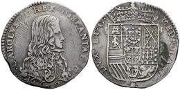 Carlos II (1665-1700). 1/2 felipe. 1676. Milán. (Tauler-3096). (Vti-16). (Mir-388/1). Ag. 13,87 g. Busto juvenil. Alguna raya en anverso y leve oxidación en reverso. Escasa. MBC+. Est...400,00.