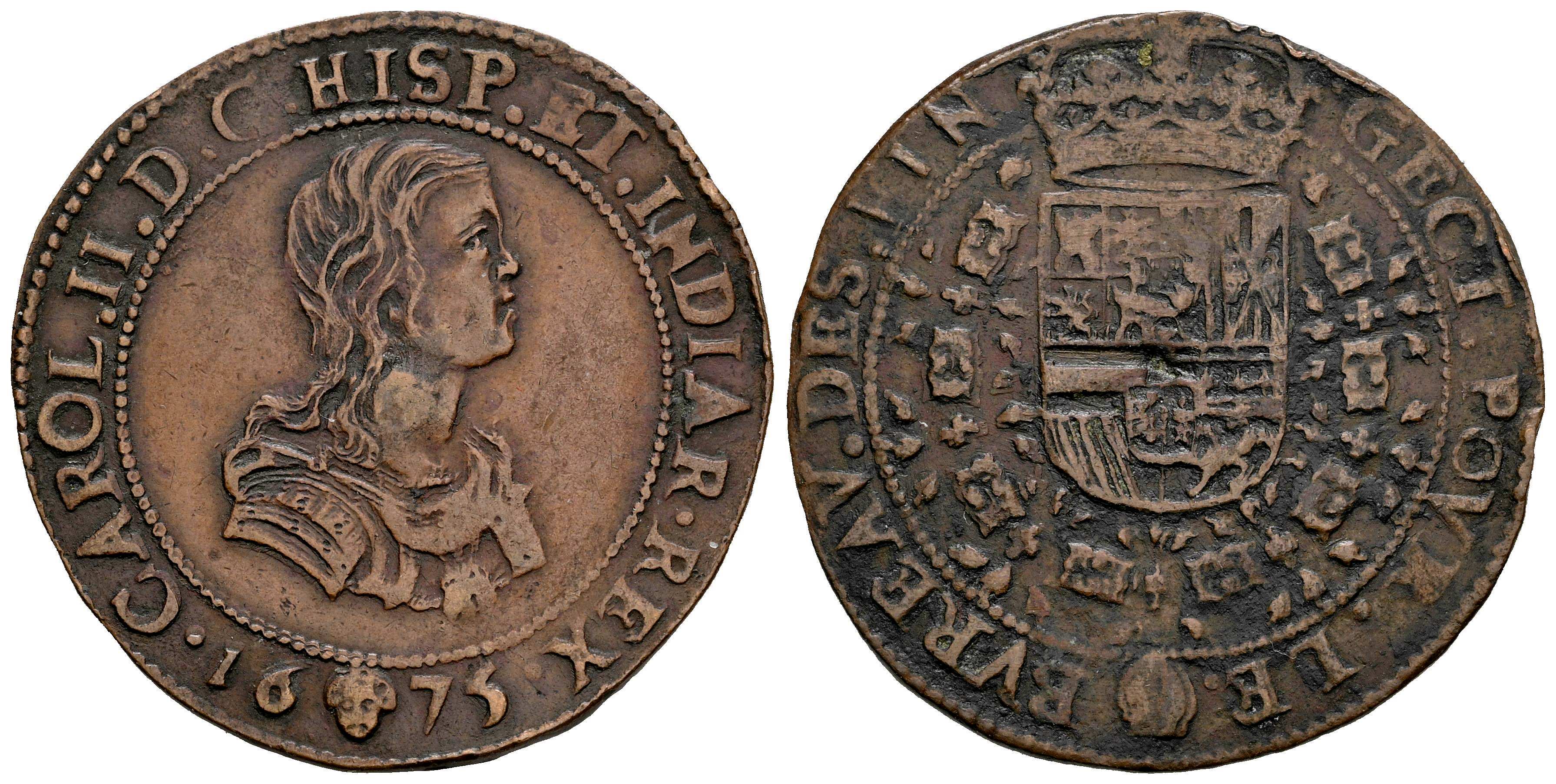 Carlos II (1665-1700). Jetón. 1675. Bruselas. (Dugn-4347). Ae. 6,91 g. Oficina de Finanzas. MBC+. Est...50,00.