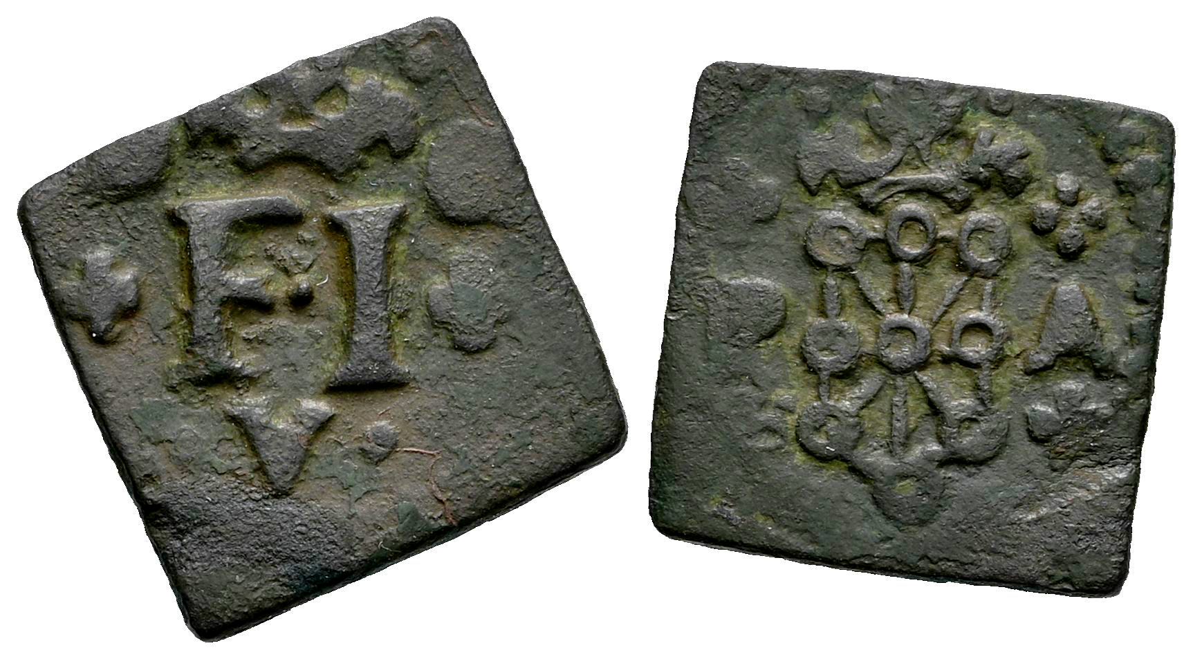 Felipe V (1700-1746). Cornado. ND. Pamplona. (Cal-23). (Ros-4.7.17). Ae. 1,44 g. Cospel cuadrado. Rara. MBC. Est...60,00.