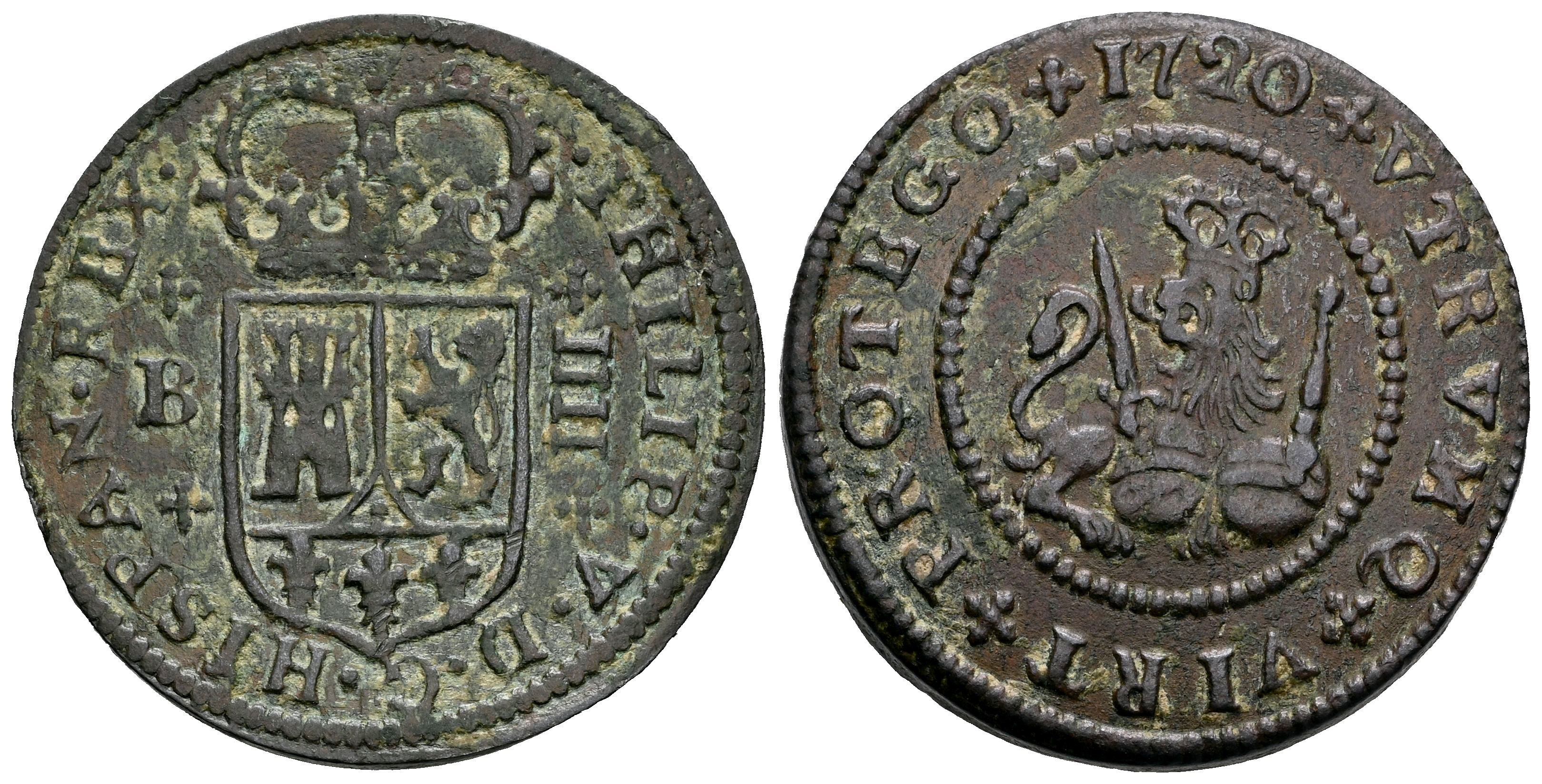 Felipe V (1700-1746). 4 maravedís. 1720. Barcelona. (Cal-84). Ae. 9,24 g. MBC+. Est...50,00.