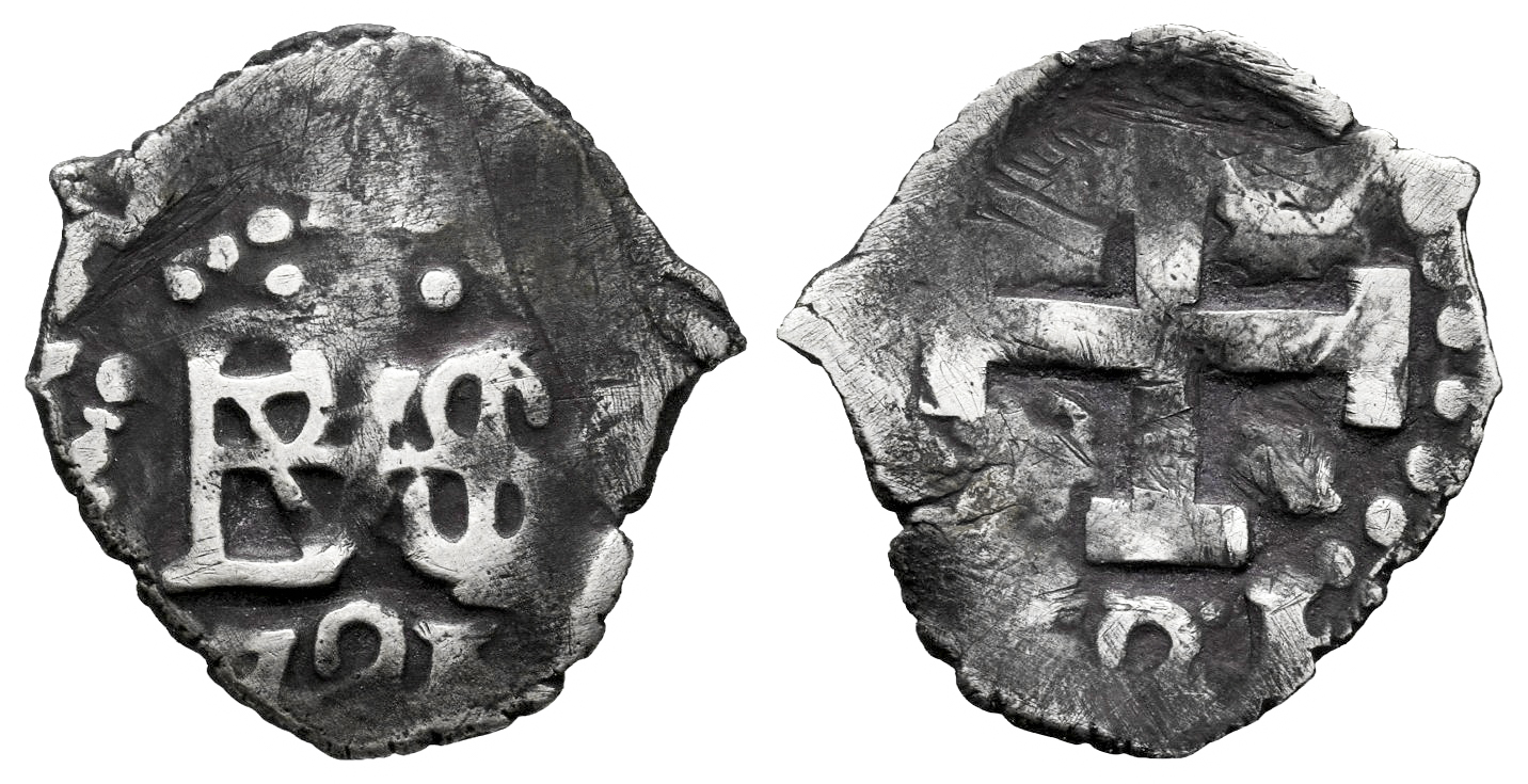 Felipe V (1700-1746). 1/2 real. 1721. Lima. (Cal-151). Ag. 1,31 g. Doble fecha, una de ellas parcial. Rara. MBC. Est...120,00.