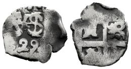 Felipe V (1700-1746). 1/2 real. 1729. Lima. (Cal-159). Ag. 1,44 g. Limpiada. Rara. BC+. Est...50,00.