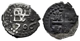 Felipe V (1700-1746). 1/2 real. 1706. Potosí. (Cal-284). Ag. 1,58 g. Escasa. MBC+. Est...100,00.