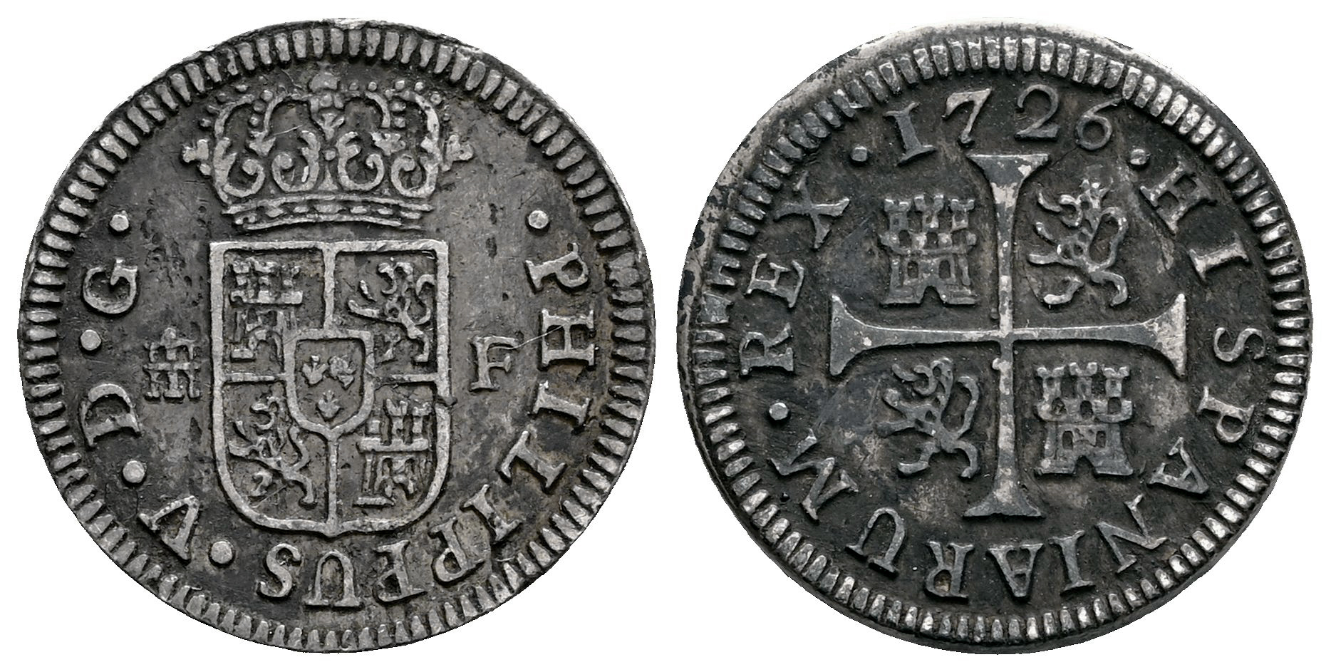 Felipe V (1700-1746). 1/2 real. 1726. Segovia. F. (Cal-333). Ag. 1,29 g. Tono. MBC+. Est...70,00.