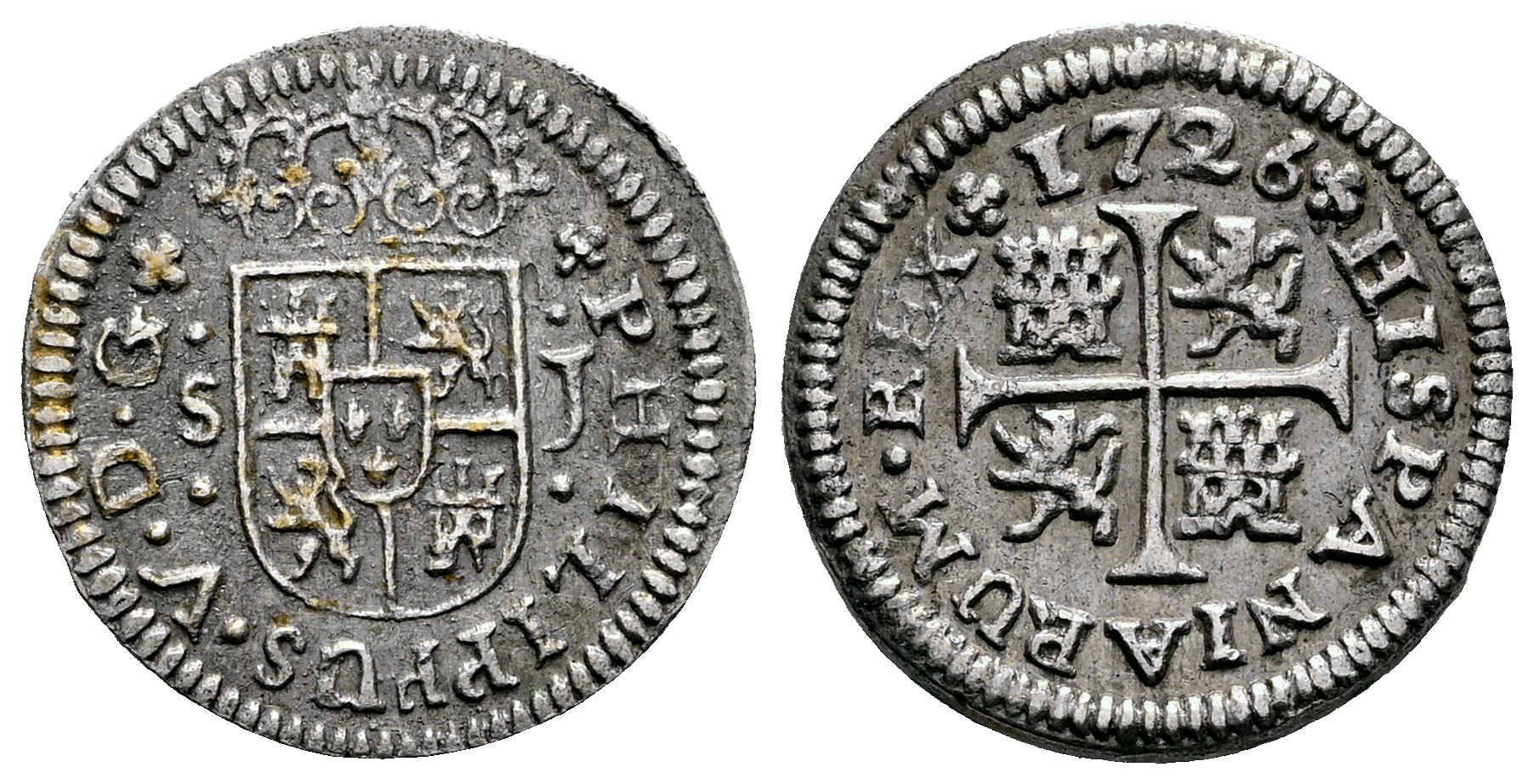 Felipe V (1700-1746). 1/2 real. 1726. Sevilla. J. (Cal-335). Ag. 1,32 g. MBC/MBC+. Est...50,00.