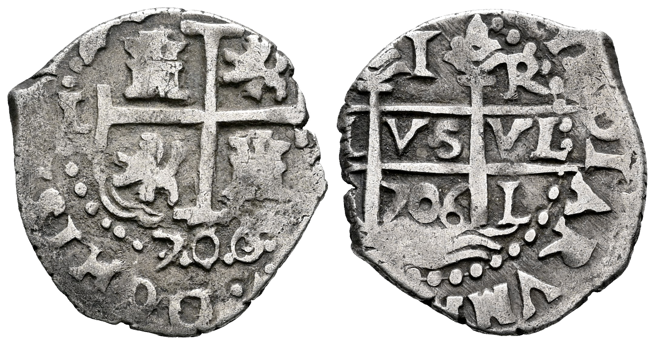 Felipe V (1700-1746). 1 real. 1706. Lima. R. (Cal-384). Ag. 2,80 g. Doble fecha. Rara. MBC/MBC+. Est...200,00.