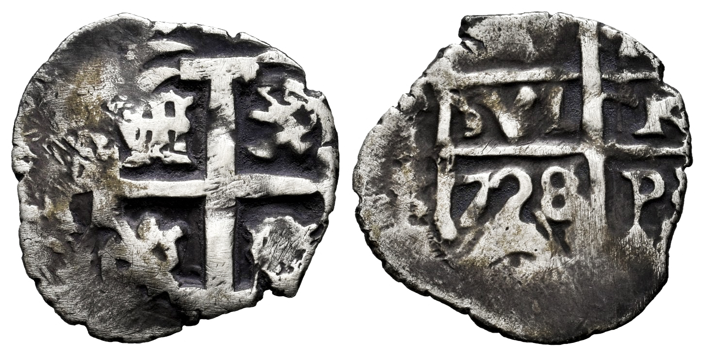 Felipe V (1700-1746). 1 real. 1728. Potosí. M. (Cal-584). Ag. 1,56 g. BC+/MBC-. Est...50,00.