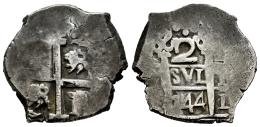Felipe V (1700-1746). 2 reales. 1744. Lima. (V). (Cal-758). Ag. 7,19 g. Escasa. MBC-/MBC. Est...150,00.