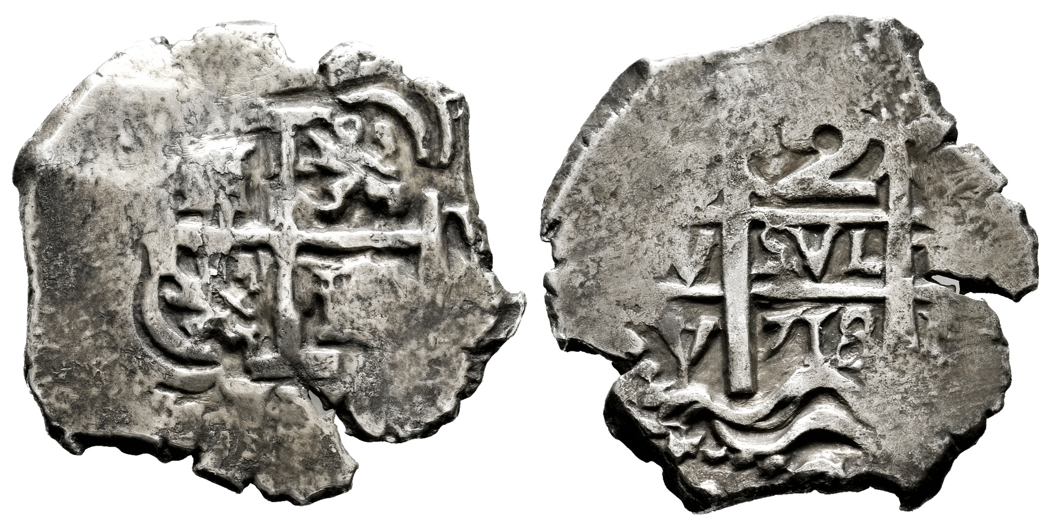 Felipe V (1700-1746). 2 reales. 1718. Potosí. Y. (Cal-894). Ag. 543,00 g. Doble fecha, una de ellas parcial. MBC. Est...150,00.