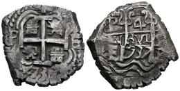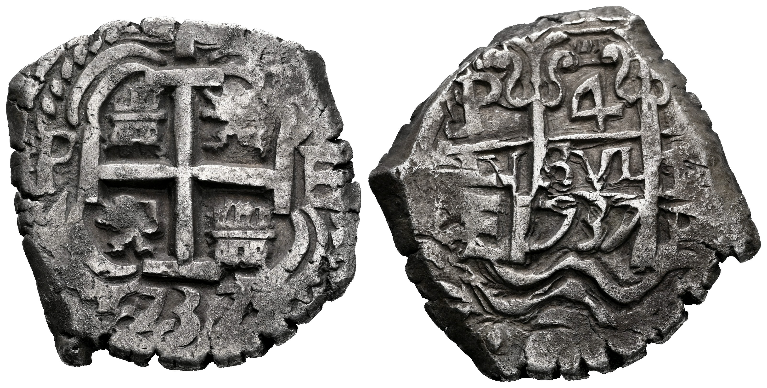 Felipe V (1700-1746). 4 reales. 1737. Potosí. E. (Cal-1192). Ag. 13,43 g. Doble fecha y doble ensayador. Ligero tono. Escasa así. EBC-. Est...400,00.
