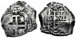 Felipe V (1700-1746). 4 reales. 1742. Potosí. P. (Cal-1200). Ag. 13,20 g. Doble fecha. MBC+. Est...350,00.