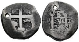 Felipe V (1700-1746). 8 reales. ND (1839). (Km-45). Ag. 25,84 g. Resello de Guatemala tipo II, sobre una moneda de 8 reales de 173?-M acuñada en Potosí bajo el reinado de Felipe V. Perforación. Rara. MBC-. Est...500,00.