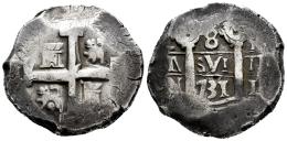 Felipe V (1700-1746). 8 reales. 1731. Lima. N. (Cal-1305). Ag. 27,38 g. Doble ensayador. Con periferias planas pero acuñación bien marcada en los centros todos sus datos visibles. Escasa. MBC-. Est...350,00.