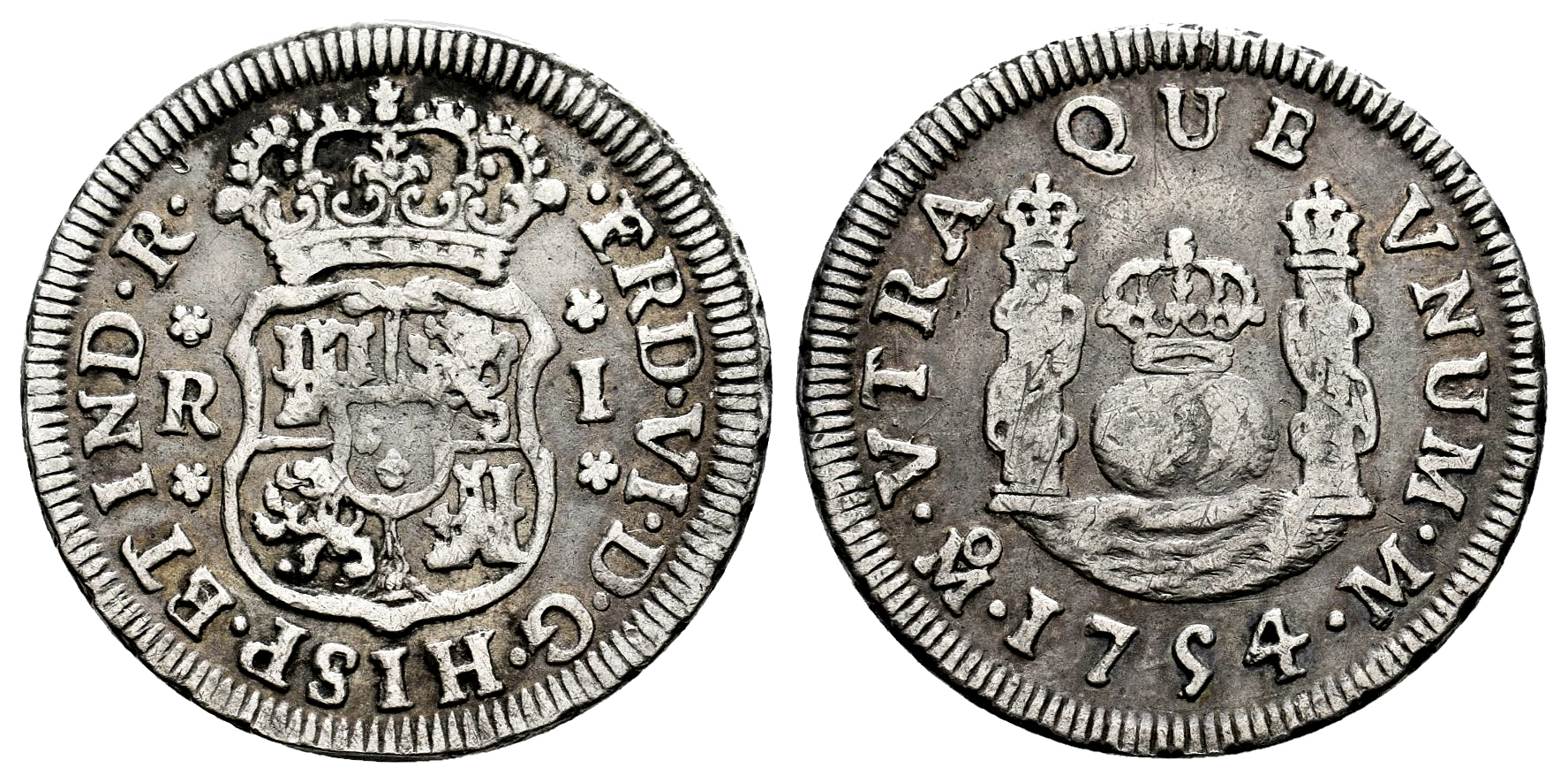 Fernando VI (1746-1759). 1 real. 1754. México. M. (Cal-193). Ag. 3,25 g. Tono. MBC/MBC-. Est...70,00.