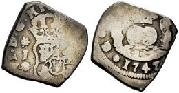 Fernando VI (1746-1759). 2 reales. 1747. Guatemala. J. (Cal-244). Ag. 6,53 g. Fecha completa. Agujero expertamente tapado. Visible el ordinal del rey. Ligero tono. Escasa. MBC-. Est...200,00.