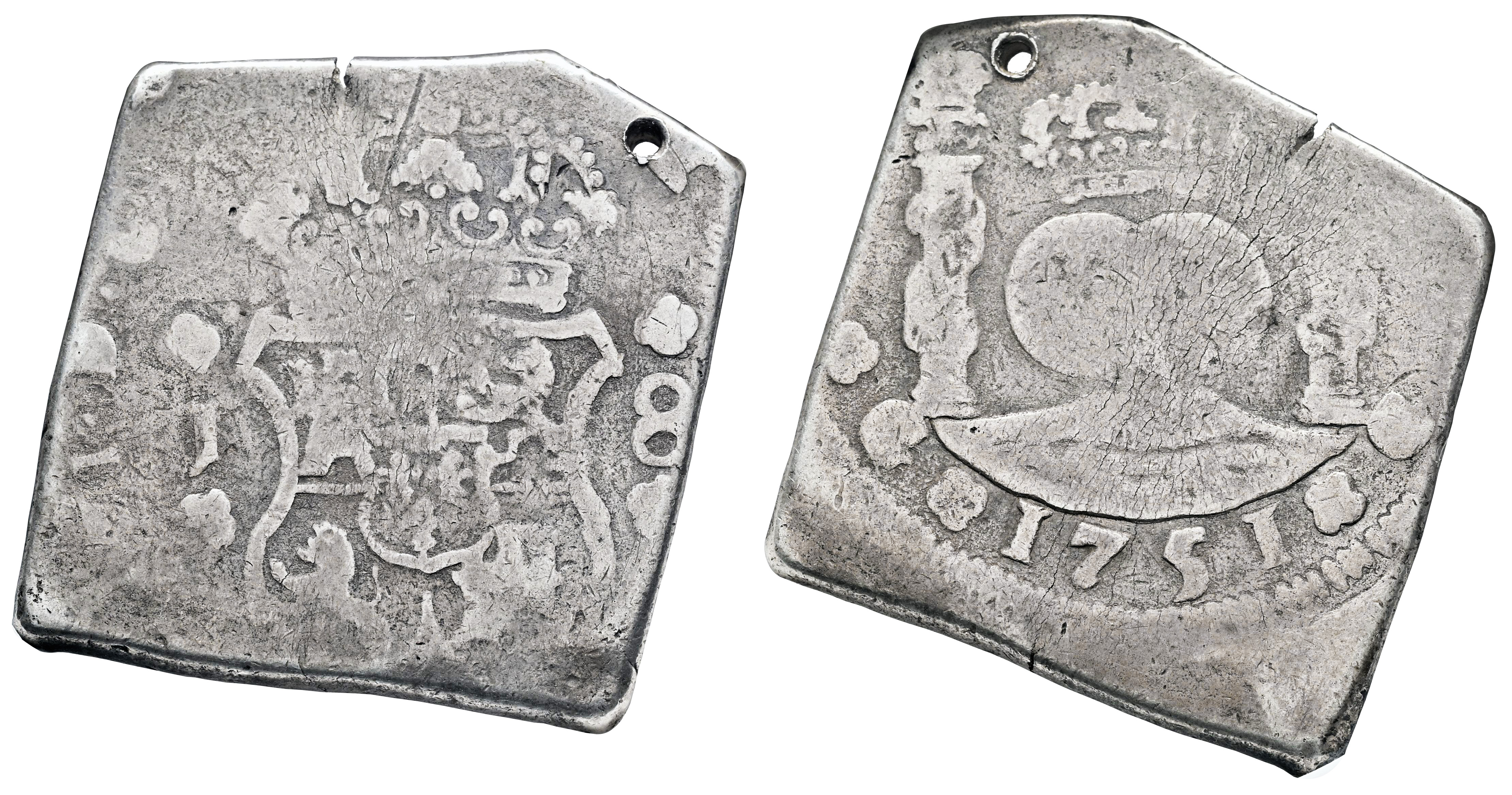 Fernando VI (1746-1759). 8 reales. 1751. Guatemala. J. (Cal-424). Ag. 26,22 g. Encapsulada por NGC como VG Details, Holed. Est...600,00.