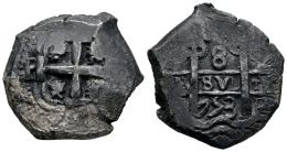Fernando VI (1746-1759). 8 reales. 1753. Potosí. q. (Cal-524). Ag. 26,23 g. Doble fecha, una de ellas parcial. Pátina oscura. Oxidaciones en anverso. MBC. Est...250,00.