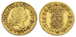 Fernando VI (1746-1759). 1/2 escudo. 1757. Madrid. JB. (Cal-561). Au. 1,75 g. Cuarto busto. MBC+. Est...250,00.