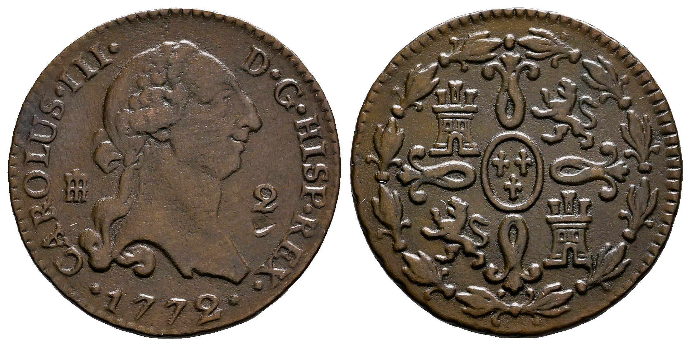 Carlos III (1759-1788). 2 maravedís. 1772. Segovia. (Cal-34). Ae. 2,10 g. Escasa. MBC/MBC+. Est...60,00.