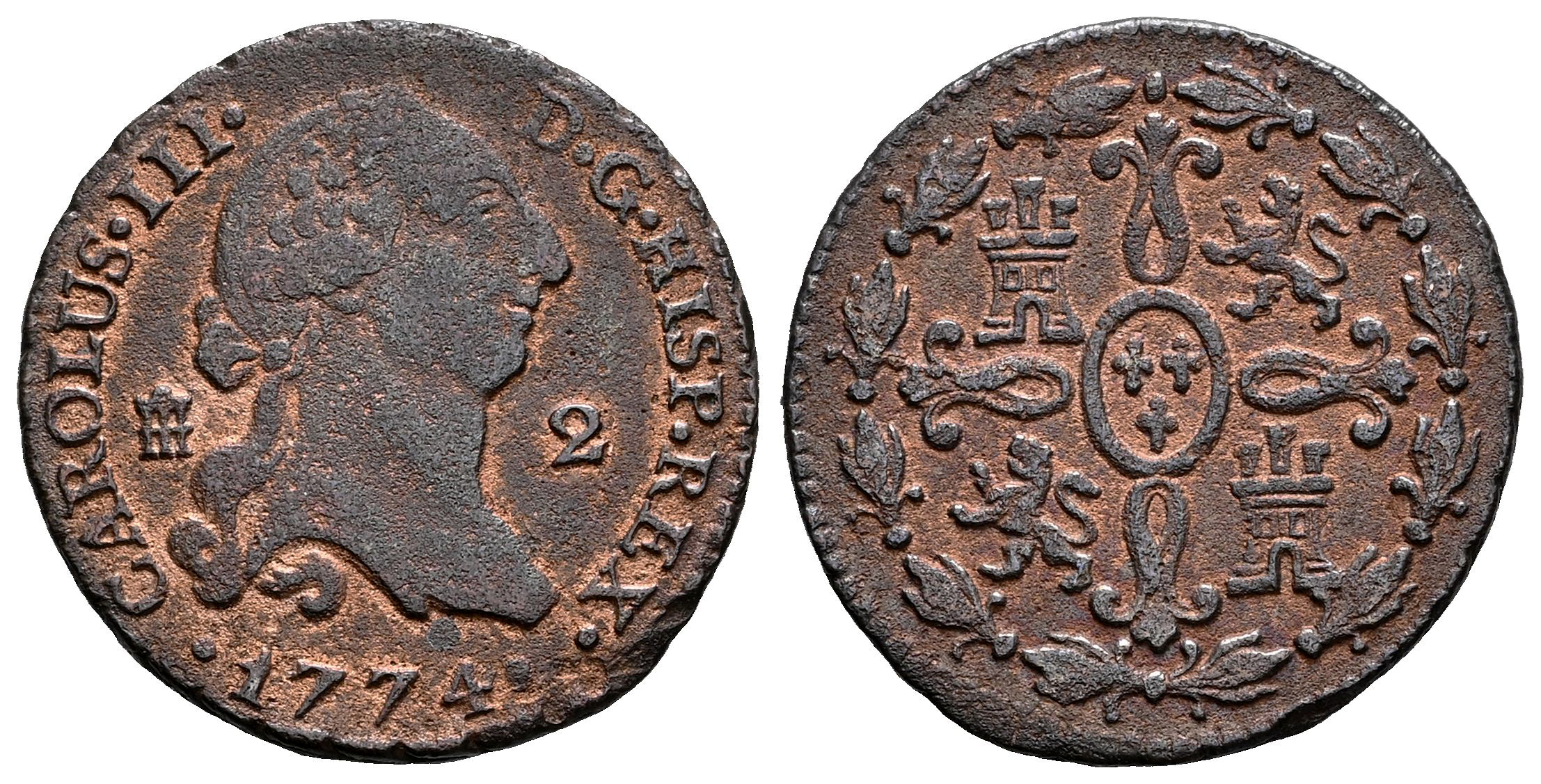 Carlos III (1759-1788). 2 maravedís. 1774. Segovia. (Cal-36). Ae. 2,33 g. MBC/MBC+. Est...30,00.