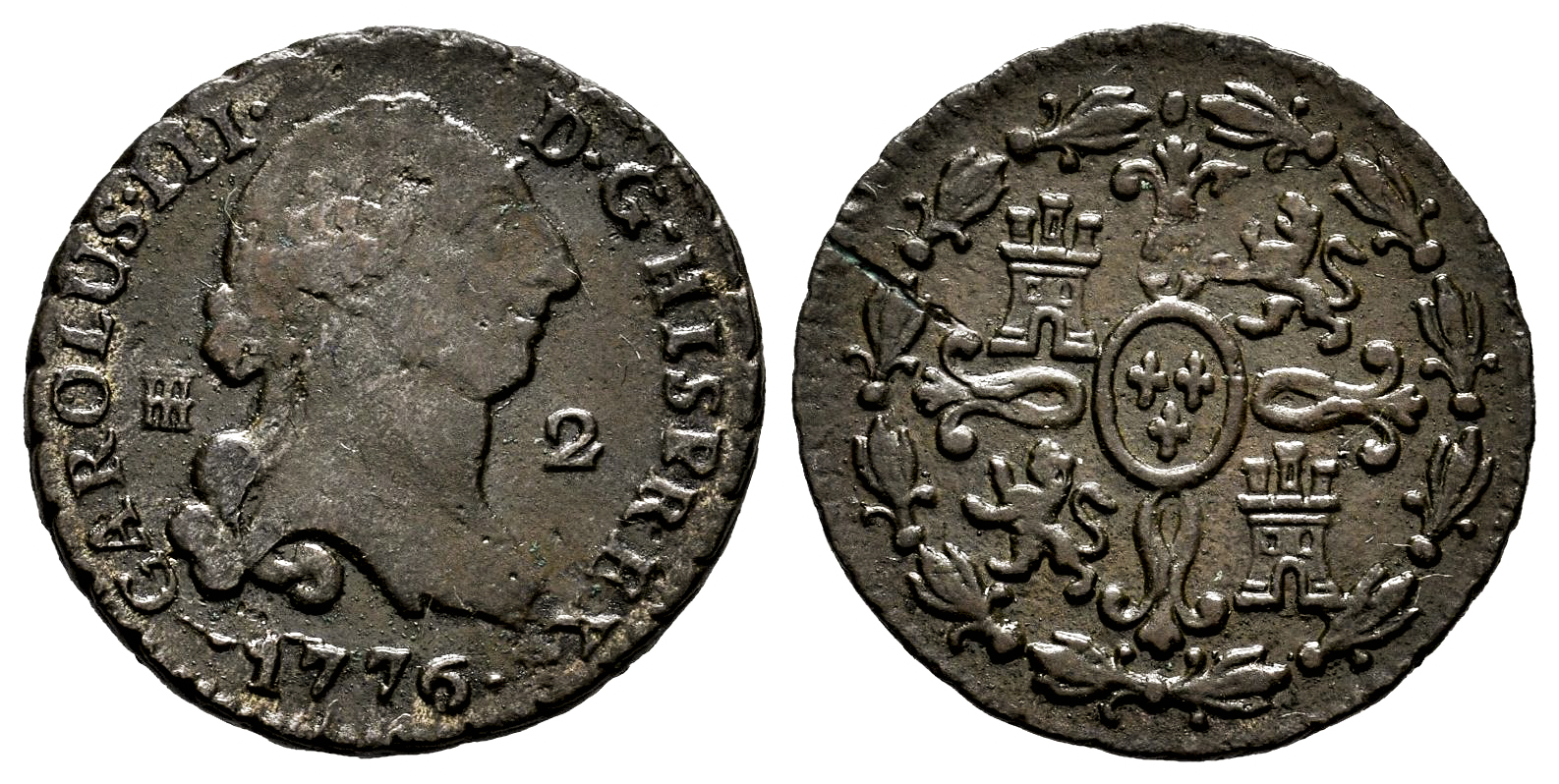 Carlos III (1759-1788). 2 maravedís. 1776. Segovia. (Cal-40). Ae. 2,32 g. MBC-. Est...20,00.