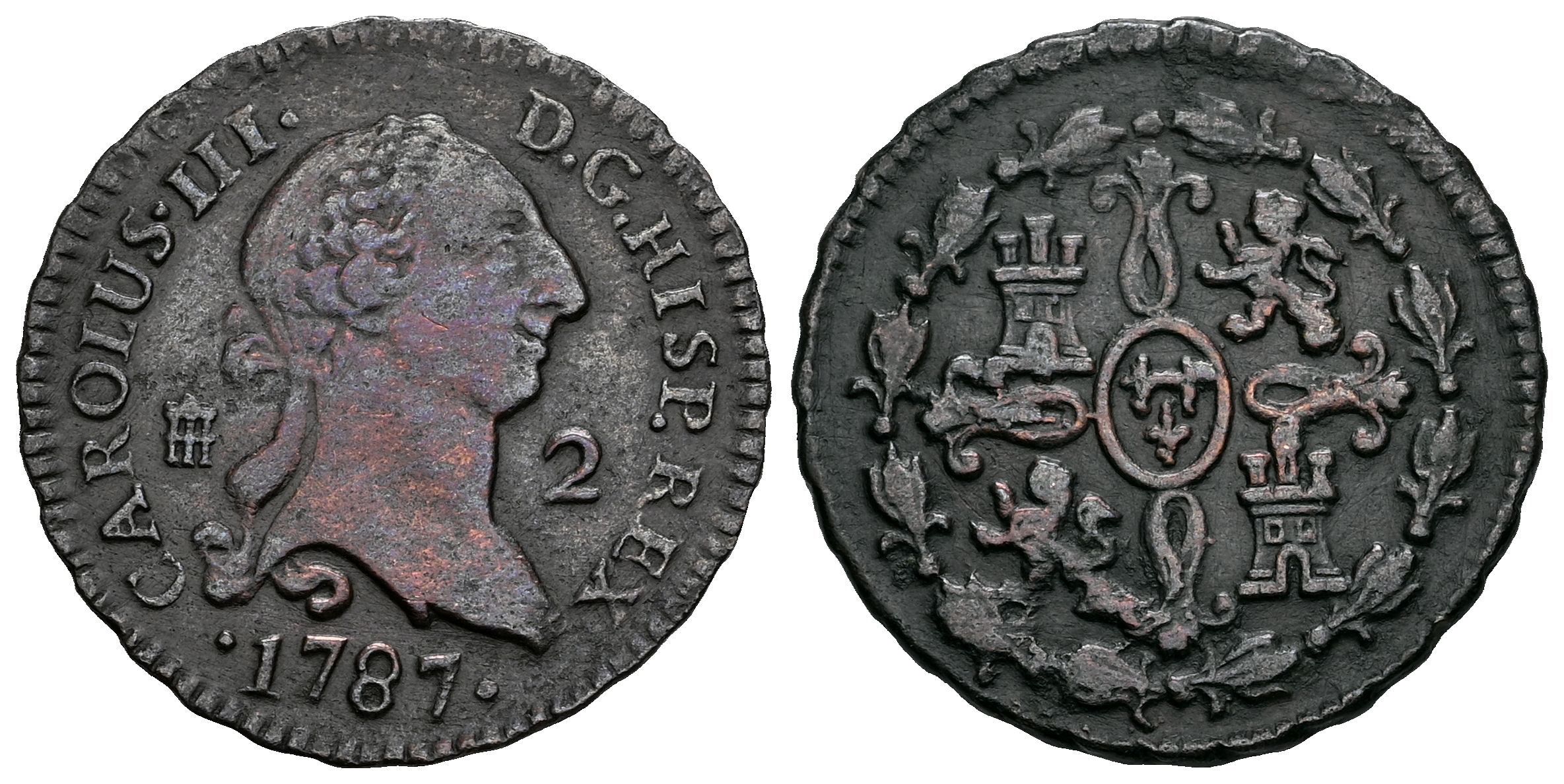 Carlos III (1759-1788). 2 maravedís. 1787. Segovia. (Cal-46). Ae. 2,44 g. MBC. Est...25,00.