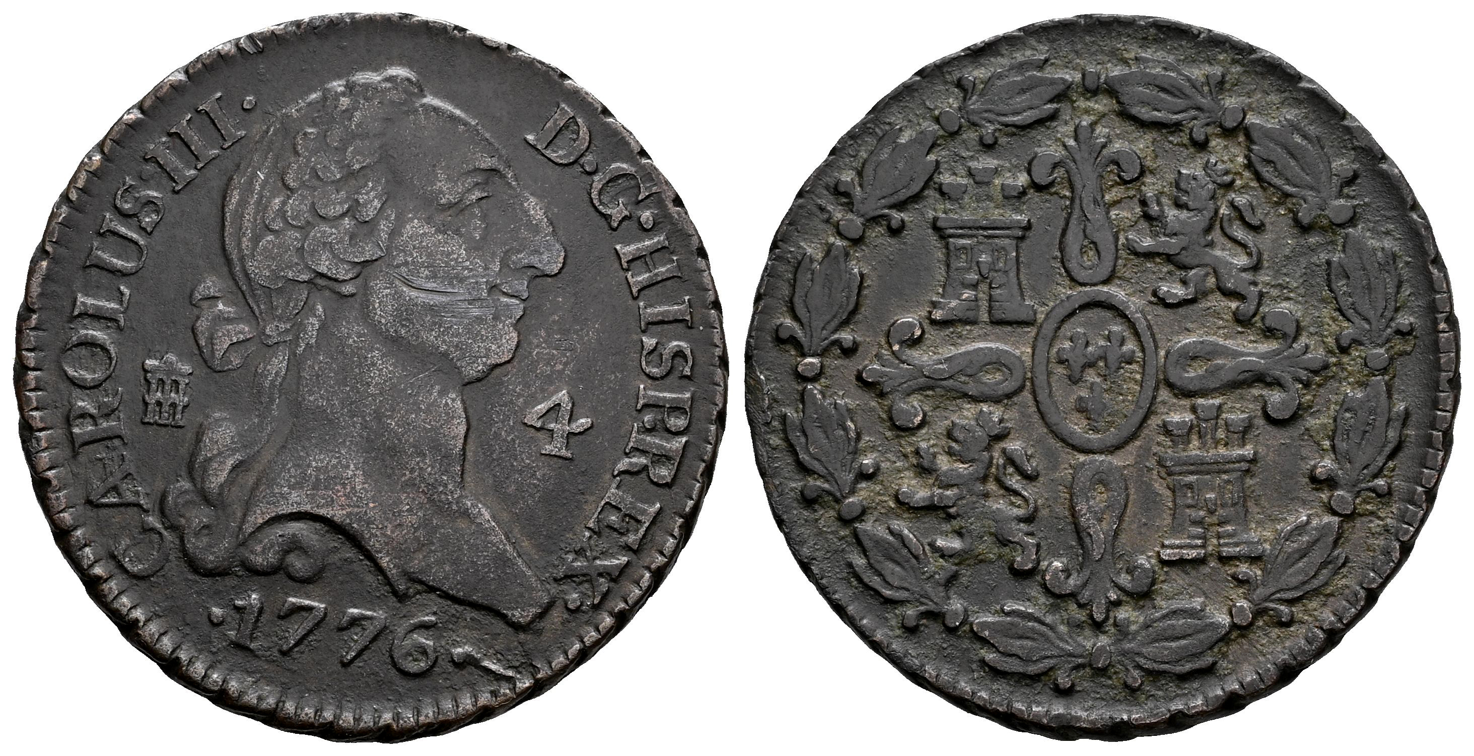 Carlos III (1759-1788). 4 maravedís. 1776. Segovia. (Cal-56). Ae. 5,20 g. Rayitas en anverso. MBC. Est...45,00.