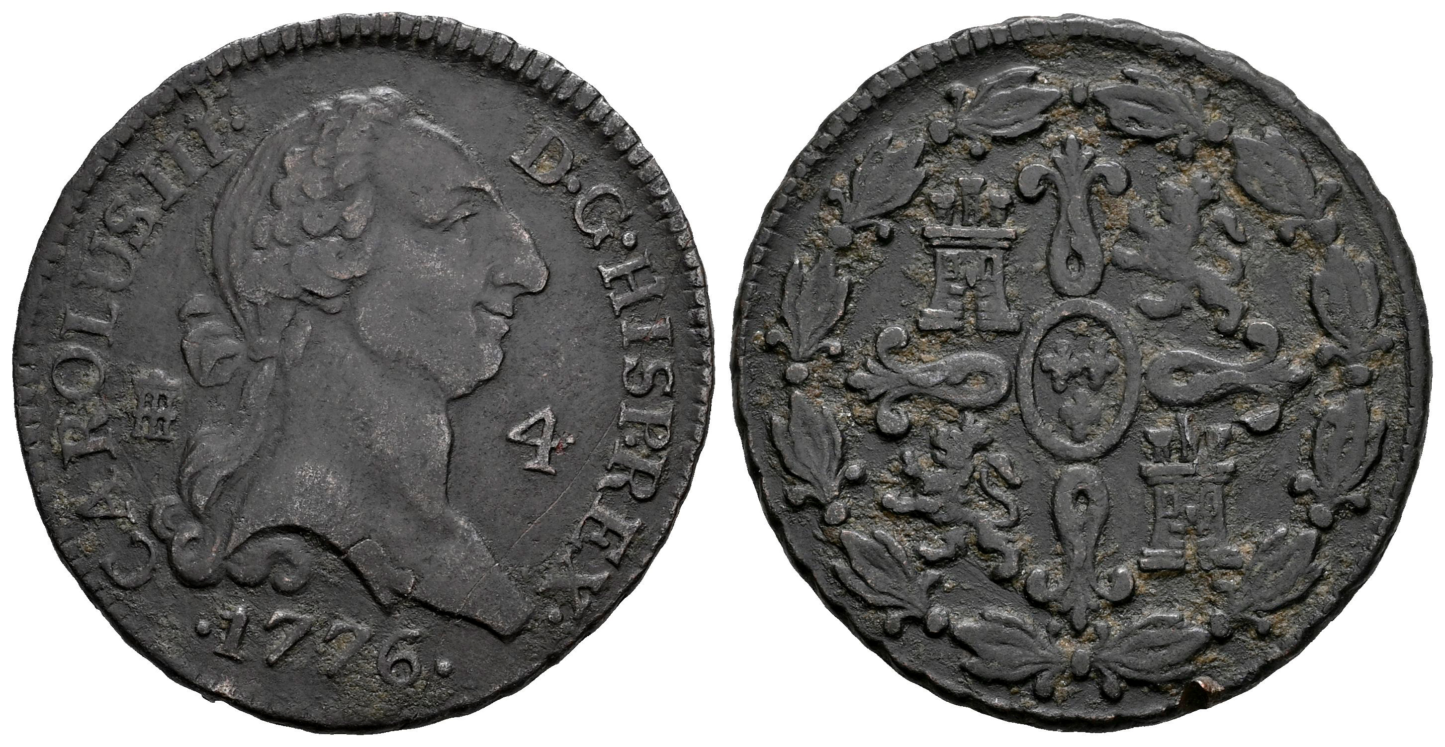 Carlos III (1759-1788). 4 maravedís. 1776. Segovia. (Cal-56). Ae. 5,29 g. Rayita en anverso. MBC-. Est...35,00.